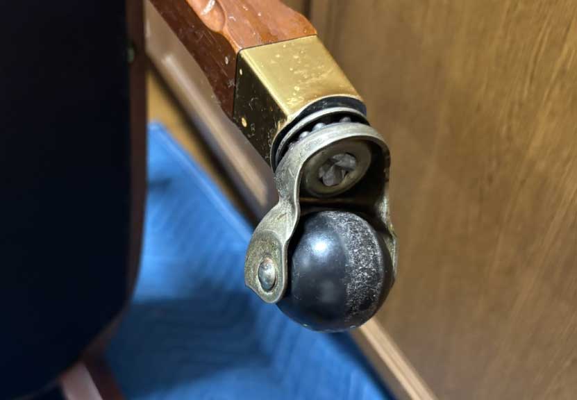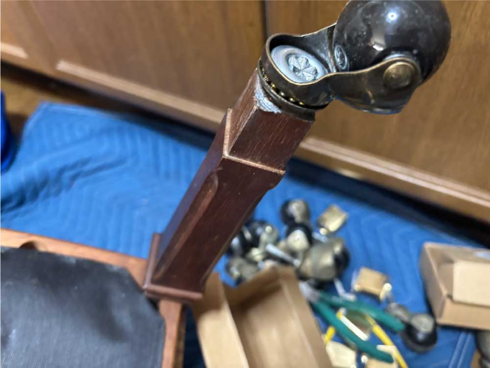 強度的に問題になりそうな木部の割れやヒビは全て補修してから新しいキャスターを取付けます。